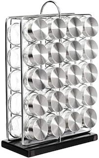 The Amazon Basics 20 Jars Spice Rack Organizer, Space-Saving Kitchen Organizer with Glass Spice Jars, Sturdy, Silver keeps spices visible and easy to grab. The Amazon Basics Lazy Susan Turntable Organizer for Spices and Condiments, 9″ Diameter, 2 Tier, Clear is useful for oils, vinegars, sauces, and everyday pantry staples. And the Amazon Basics Space-Saving Stackable Metal Kitchen Cabinet Organizer Shelves for Dishes, Pantry Organization, 12.5″ L x 8″ D x 4.5″ H, Set of 2, White helps maximize cabinet space without making things feel cluttered.