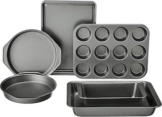If you want a broader all-in-one set, the Amazon Basics 6 Piece Nonstick Carbon Steel Bakeware Set with Cake, Muffin, Cookie, and Loaf Pans, Easy Release, Oven Safe, 16.25 x 11.75 x 6.25 inches covers a lot of ground.