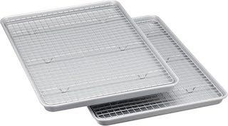 The Amazon Basics Ceramic Nonstick Baking Sheets & Cooling Rack Set, Dishwasher Safe, Oven Safe, Half Sheet Size, Gray, 2-Pack is a practical option for everyday roasting and baking.