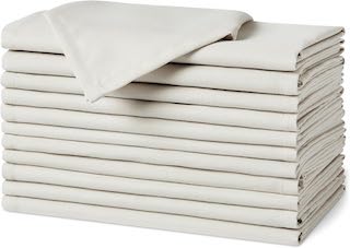 The Amazon Basics Reusable Stain and Wrinkle Resistant Cloth Napkins, 17 x 17 inches, White, 12-Pack add a cleaner, more elevated look for dinners at home, while the Amazon Basics Everyday Paper Napkins, 400 Count are an easy practical staple to keep on hand.