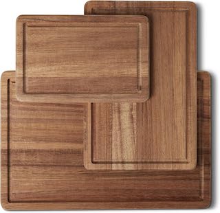 The Amazon Basics Wooden Chopping Boards, 3-Piece Set, Acacia Wood, Pre-Oiled with Juice Groove gives you multiple sizes for different tasks, which is helpful whether you’re slicing herbs, chopping vegetables, or carving protein. The acacia wood adds warmth to the kitchen and also works beautifully for serving antipasti or bread at the table.
