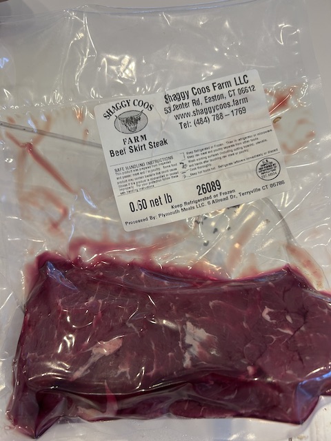 I’d thawed some steaks from Shaggy Coos Farm that we picked up over the weekend — a ribeye and a skirt steak — and got the grill going. Shaggy Coos is right down the road here in Easton, a female-run farm raising antibiotic and hormone-free beef, and the quality shows up immediately on the plate. The ribeye had the fat marbling that makes a steak worth eating. The skirt steak brought that intense, beefy depth that takes high heat beautifully.